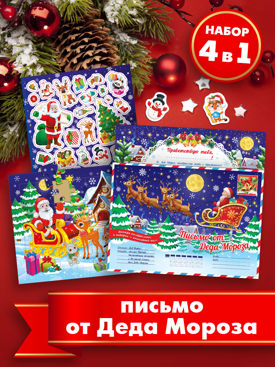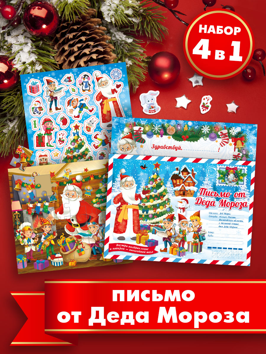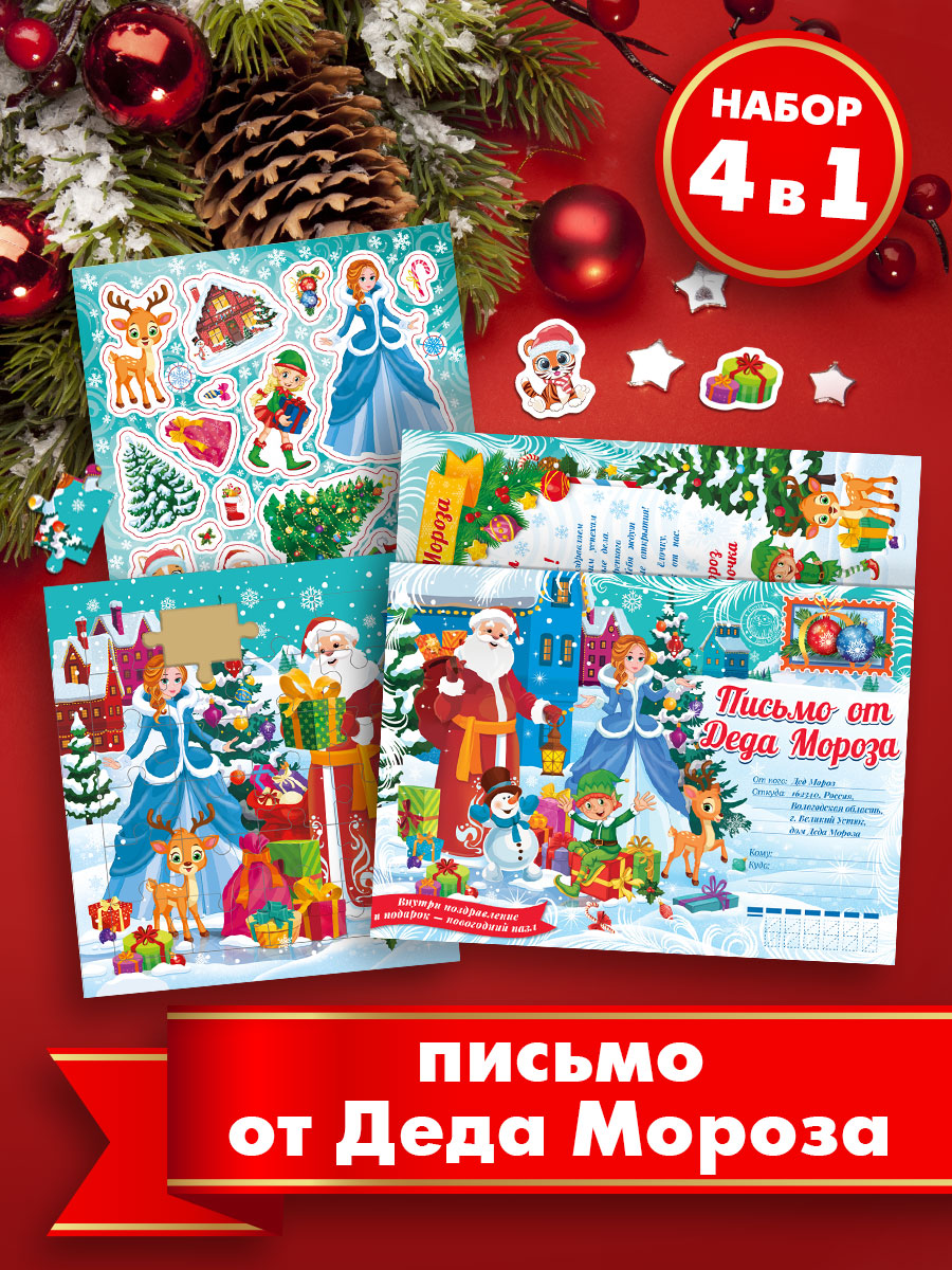 Когда появилась традиция писать письмо деду Морозу достоверно неизвестно. Но сейчас это такая же традиция как и загадывать желание под бой курантов. Многие детки с волнением пишут Дедушке Морозу, рассказывают ему о своих подвигах и достижениях за прошедший год и с упоением ждут новогодней ночи, ведь добрый дедушка положит под ёлку то, что они заказали в письме. Ведь они это заслужили. А представьте, что вместе с подарком под ёлкой будет лежать ответное письмо от Деда Мороза. И не просто письмо, а в комплекте с красочным паззлом, открыткой и наклейками для новогоднего творчества. Это ли не праздник! Письмо можно приложить к другому подарку, а можно подарить отдельно, в любом случае, он получит огромное количество впечатлений и его вера в добро и чудо укрепится еще больше.